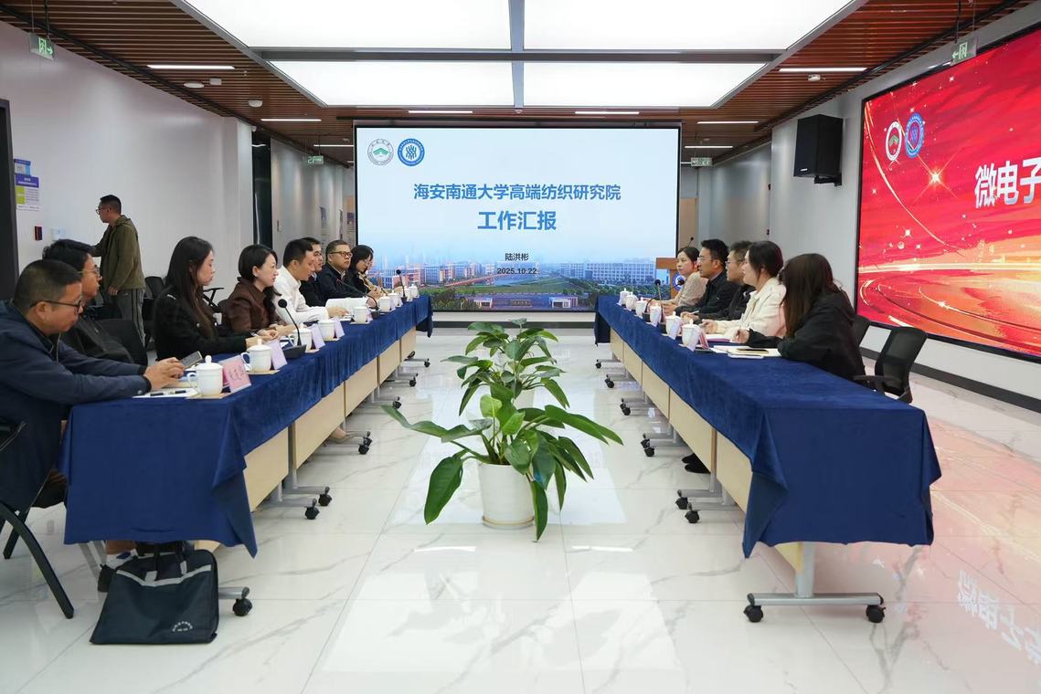 10 月 22 日上午,公司党总支书记金翼、副经理(主持工作)赵继聪带领班子成员及科研骨干等前往海安英国上市公司365高端纺织研究院,就研究院建设规划、科研工作推进、产学研协同合作等内容开展学习交流。